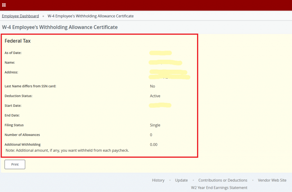 8. If You Need to Print Your W-4 Click on “Print W-4”